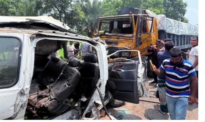 NN Online: Six people, including five women, lost their lives in a tragic head-on collision between a microbus and a truck on the Bonpara-Hatikumrul Highway...