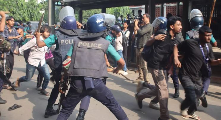 UNB: Students moved to Stadium Market area near Gulistan on Tuesday afternoon after being dispersed from the Secretariat by law enforcers using baton charge, sound...