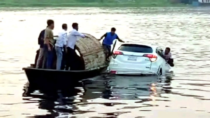 A private car plunged into the Shitalakkhya River after the driver lost control while boarding a ferry in Bandar upazila of Narayanganj on Thursday. There...