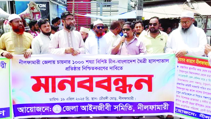 Nilphamari Correspondent : A human chain was held at Chowrangi intersection of the district on Saturday demanding the construction of a 1,000-bed China Friendship Hospital...