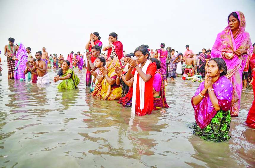Sr. Staff Reporter, Kishoreganj : Thousands of Hindu devotees thronged the banks of old Brahmaputra river in Hossainpur of Kishoreganj on the occasion of Ashtami...