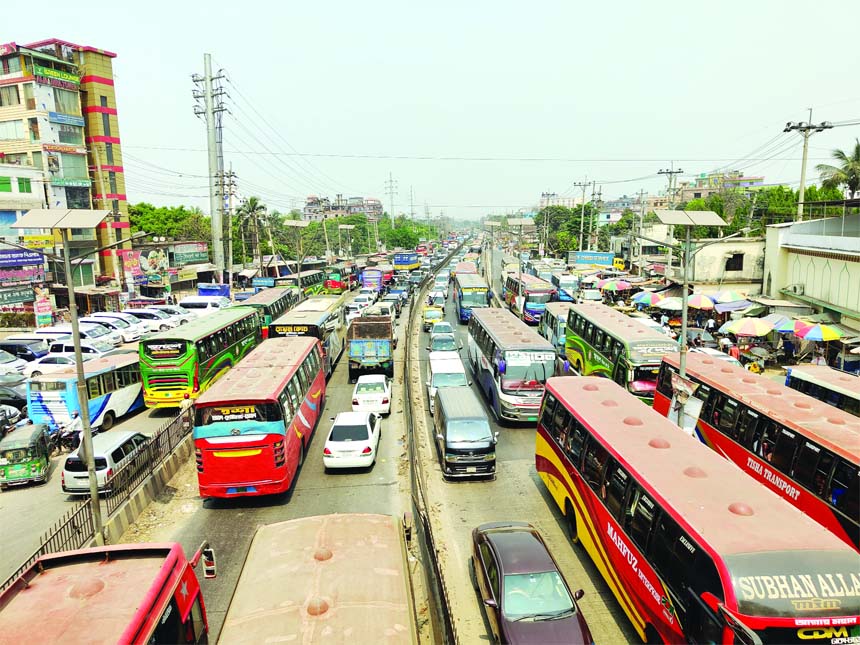 Staff Correspondent : A 15-kilometer long traffic jam has formed on the Dhaka-Chattogram highway, stretching from Kanchpur to the Meghna Bridge toll plaza in the...