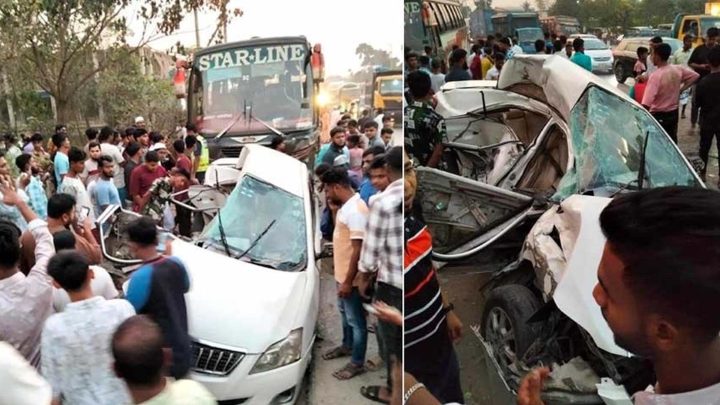 Road Crash: 4 killed in bus-private car collision in Cumilla