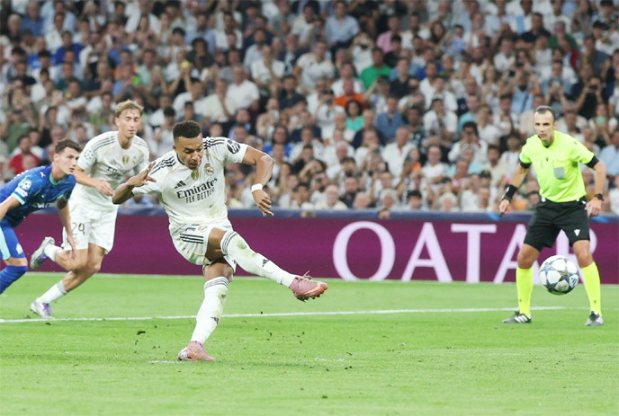 Agency : Kylian Mbappe converted two penalties to secure Real Madrid a 2-1 victory over Olympique de Marseille in their Champions League group stage opener...