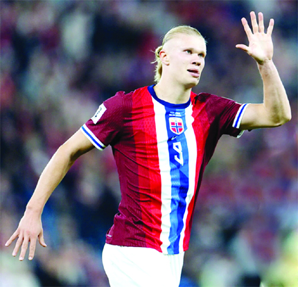 Agency : Norway’s Erling Haaland scored five goals and substitute Thelo Aasgaard added four more as they hammered hapless Moldova 11-1 to take another huge...