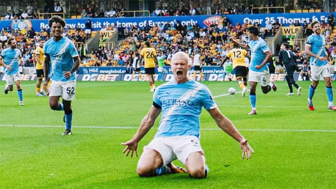Agency : Manchester City signalled their intent to take back the Premier League title as Erling Haaland struck twice in a 4-0 win at Wolves...