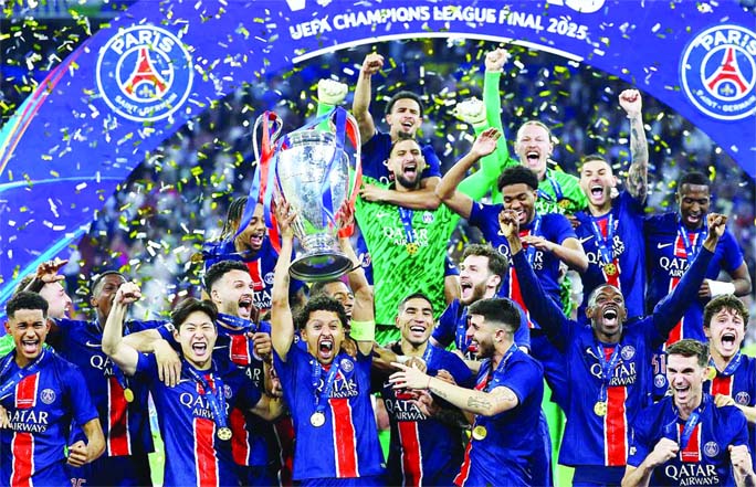 Agency : Teenager Desire Doue scored twice to inspire Paris St Germain to their first European Cup triumph with a crushing 5-0 victory over Inter...