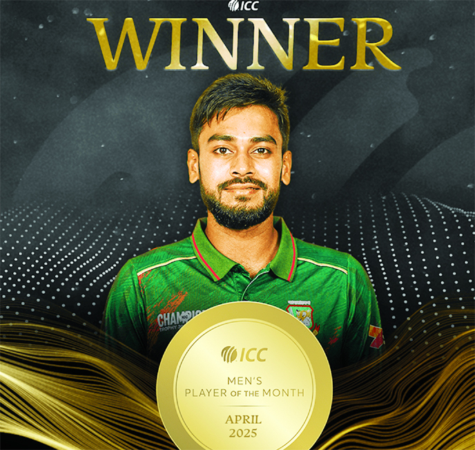 Agency : Bangladesh all-rounder Mehedi Hasan Miraz has been crowned the ICC Men’s Player of the Month for April 2025, becoming only the third Bangladeshi...