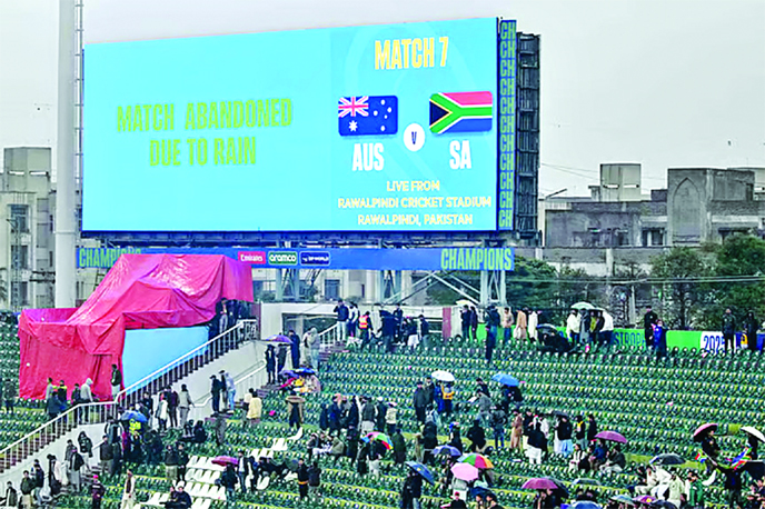 Agency : The Champions Trophy clash between Australia and South Africa was abandoned without a ball being bowled because of rain at Rawalpindi Cricket Stadium...