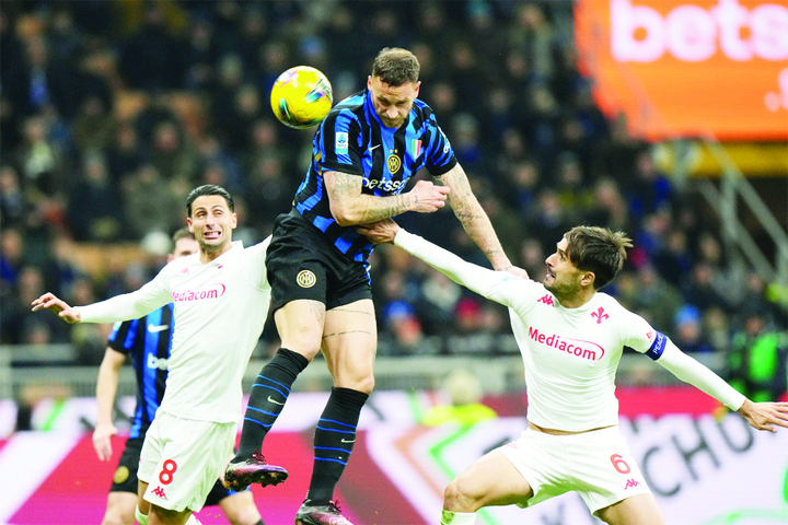 Agency: Inter Milan secured a 2-1 home win over Fiorentina on Monday, with substitute Marko Arnautovic’s second-half header keeping them within striking distance of Serie...