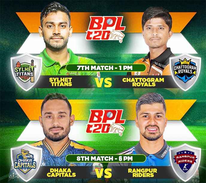Sports Reporter : Sylhet Titans will face Chattogram Royals today in their match of the Bangladesh Premier League (BPL) Cricket at 1:00pm at the Sylhet...