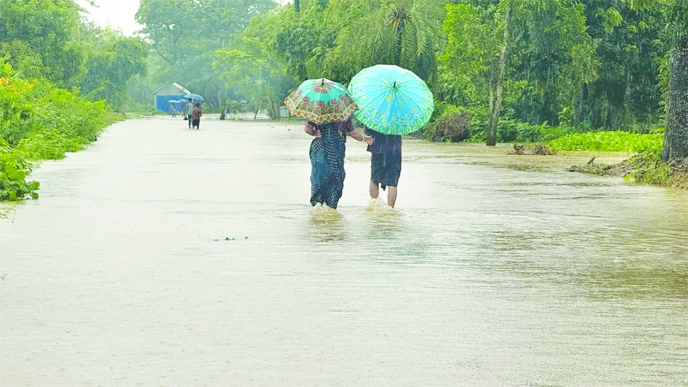 Staff Reporter : At least 30 villages across Fulgazi and Parshuram upazilas in Feni district have been inundated following the collapse of flood control embankments...