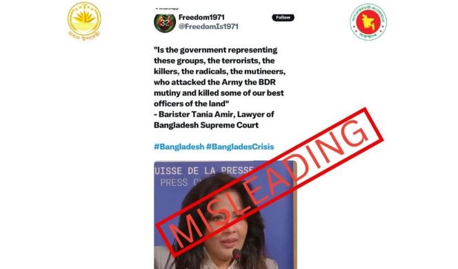 UNB: Chief Adviser’s press wing on Wednesday said statements by Barrister Tania Amir about the 2009 Bangladesh Rifles mutiny are “misleading” and reflect her own...
