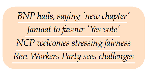 Reza Mahmud : Almost all political parties welcomed the 13thh national election schedule announced by the election commission (EC) on Thursday saying it was long...