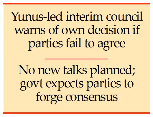 Staff Reporter : Expressing concern over the growing political rift regarding the implementation of the July National Charter, the Advisory Council of the interim government...