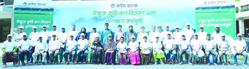 Upazila Agriculture Officer Mostafa Hasan Imam poses for a photo session with the participants of 'Reinforcing its commitment to financial inclusion and agricultural development' organaised by Prime Bank held an Open Agri Credit Disbursement and Training Programme in Birol, Dinajpur.