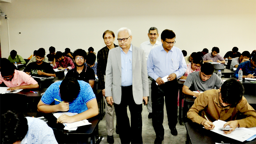 Vice-Chancellor of Bangladesh Engineering and Technology (BUET) Professor Dr. Satya Prasad Majumder visits an examination centre of final admission test for the academic year of 2023-24 on the BUET campus on Saturday.